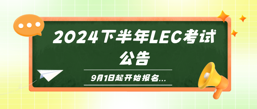 9月1日起LEC考试开始报名发表时间:2024-07-31 12:03 2024 National LEC Exam ![]() 根据《法律英语证书(LEC)全国统一考试实施办法》等有关规定,现就2024下半年法律英语证书(LEC)全国统一考试公告如下: 一、报考条件 凡遵守中华人民共和国宪法和法律,恪守职业道德,具有一定法律英语水平的人员,均可报名参加考试。 二、报名方式与时间 2024下半年法律英语证书(LEC)全国统一考试实行网上报名,报名时间为9月1日0时至9月30日24时。考生应当在规定期限登录考试官网(www.lectest.com),按照网上报名要求和步骤填报个人信息。逾期不予补报。 登录LEC考试官网 →考生服务“在线报名”→“马上注册”(已注册可直接登录)→根据报名系统要求填报个人信息。 单项补考的报名方式和时间同上。 申请补考条件: ①参加全科考试后,至少有一项(试卷一、试卷二)成绩合格(60分及以上); ②单项合格成绩在连续三个考试周期内有效,即考生最多可申请补考三次; ③法律英语证书(LEC)全国统一考试每年有两个考试周期,分别为上半年考试、下半年考试; ④关于单项补考的详细内容,请详见“关于调整法律英语证书(LEC)全国统一考试单项补考的规定”(https://www.lectest.com/newsinfo/6170438.html)。 三、报名材料 考生报名时应当提供以下材料: 1. 有效居民身份证或护照; (1)本人近半年内正面、免冠、彩色(蓝、红、白色底均可)电子证件照片; (2)照片标准尺寸:390像素(宽)×567像素(高); (3)照片文件大小:大于20KB ,小于1000KB; (4)照片文件类型:jpg格式。 四、考试费用与考区选择 考试费用为880元,单项补考费用为450元。考生可通过报名系统使用微信、支付宝、网上银行等方式在线支付。网上交费截止时间为9月30日24时。 考区设置:2024上半年法律英语证书(LEC)全国统一考试,拟在北京、上海、广州、重庆、武汉、南京、杭州、西安、济南、青岛、大连、成都、厦门、兰州、长沙、郑州、长春等城市设置考区,考生报名时可自行选择。具体考试地点以准考证上的信息为准。 五、考试大纲 法律英语证书(LEC)全国统一考试实行全国统一命题,以《法律英语证书(LEC)全国统一考试大纲》作为命题依据。考试大纲在考试官网(https://www.lectest.com/ksdg)公布。 六、考试时间与方式 法律英语证书(LEC)全国统一考试包括试卷一(客观题)和试卷二(主观题)两部分,均于2024年11月30日进行。 试卷一:上午 8:30-11:30,考试时间180分钟。 试卷二:下午14:00-17:00,考试时间180分钟。 LEC考试实行闭卷、线下集中机考方式。试题、答题要求和答题界面均在计算机显示屏上显示,考生应当使用计算机鼠标、键盘在计算机答题界面上直接作答。 七、打印准考证 报名完成后,考生可于考试前一周登录LEC考试官方网站自行下载并打印准考证。考试当天,考生需凭准考证和有效身份证件进入考场。 八、成绩公布与证书查询 考试成绩将于考试结束60日内公布。考生可通过官网中考生服务的“成绩查询”系统查询成绩,并可自行打印成绩通知单。 考试成绩公布之日起30日后,考生可通过官网中考生服务的“证书查询”系统查询本人的考试证书;成绩合格及优秀,方可下载电子证书。 LEC试卷总分200分。总分达130分及以上,且主、客观两卷得分均不低于60分,为成绩合格;总分达170分及以上,且主、客观两卷得分均不低于80分,为成绩优秀。 九、考试咨询 关于2024上半年考试具体事宜的咨询,考生可发送电子邮件至lec@lectest.com,或工作日拨打电话010-58908397进行咨询。 法律英语证书(LEC)全国统一考试指导委员会 2024年7月15日 ![]() 法平教育 LEC考试资讯号 |