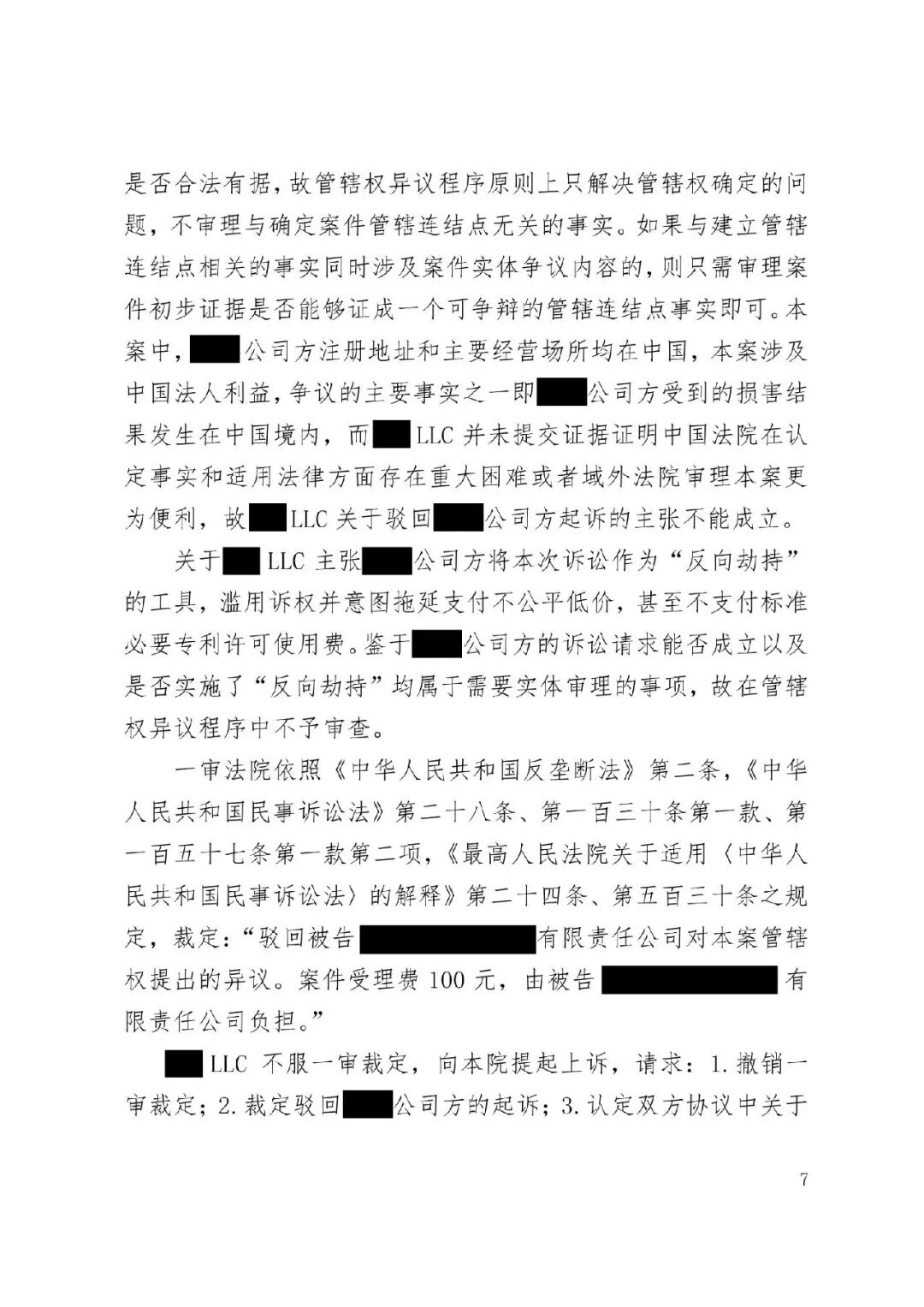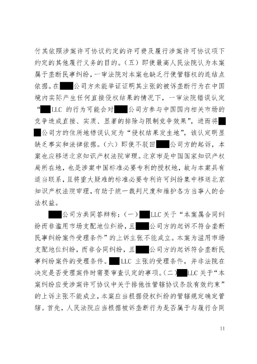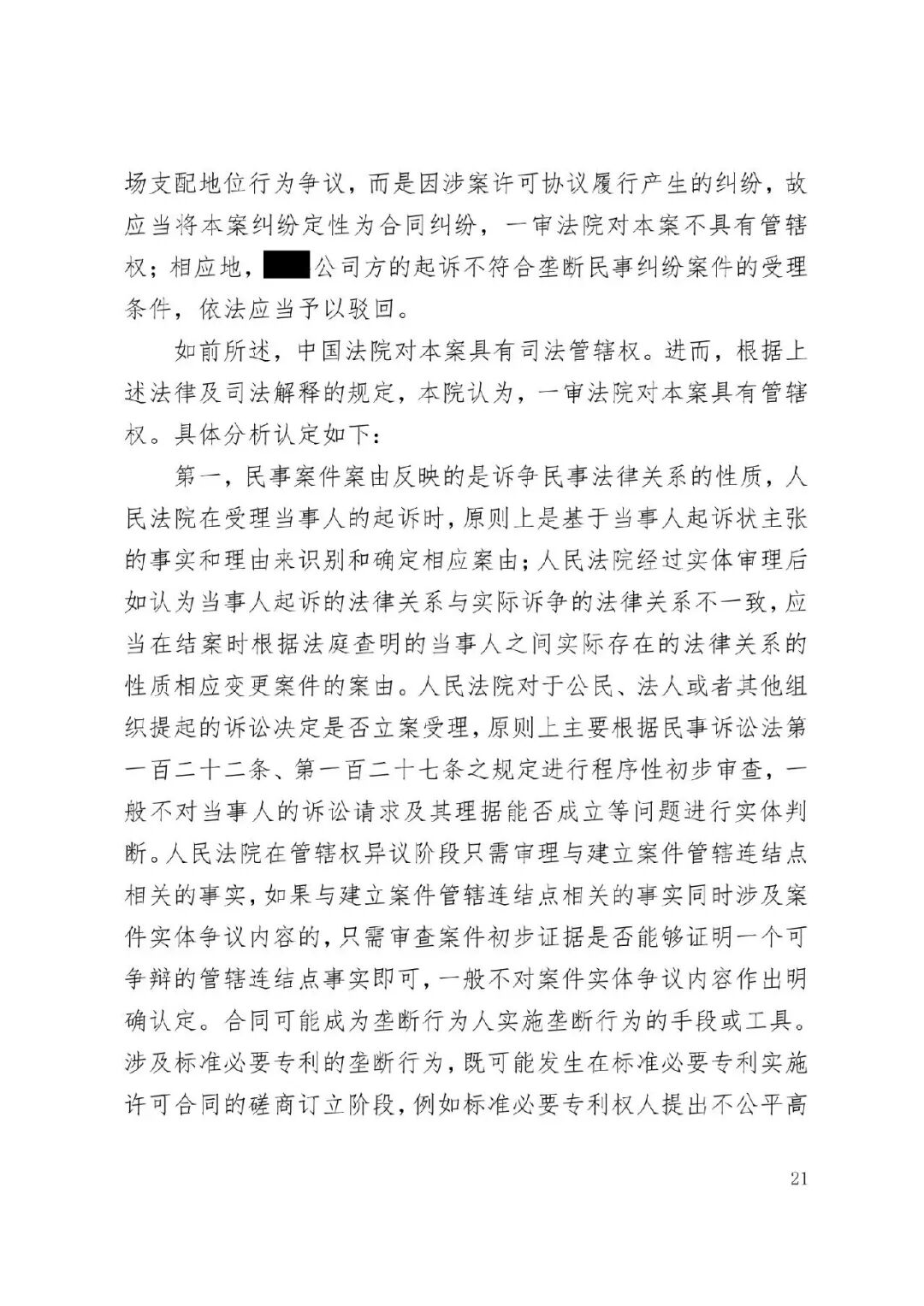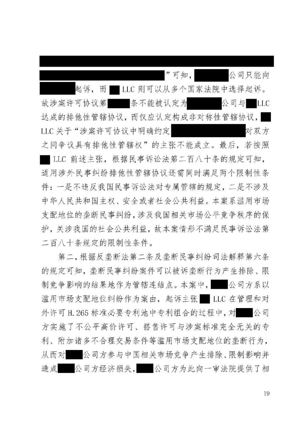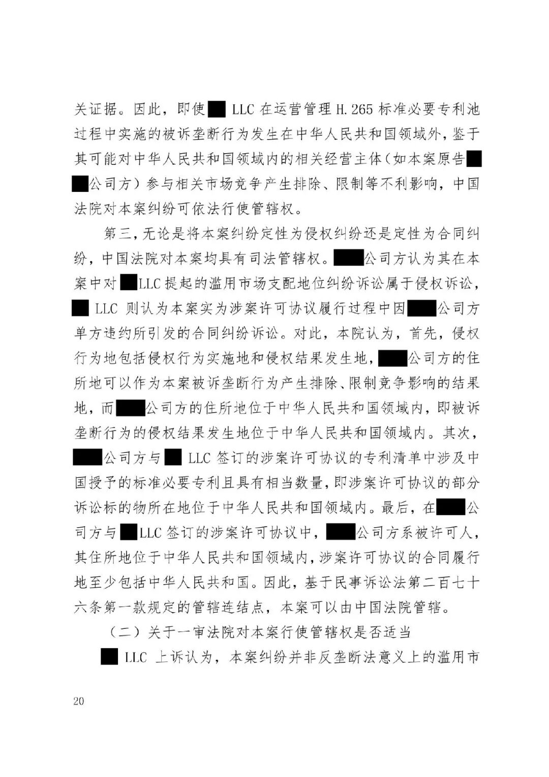涉外案例 | 最高院明确涉外SEP垄断纠纷管辖规则:被诉垄断行为产生排除、限制竞争影响的结果地可作为管辖连结点发表时间:2026-01-12 13:35 案情回顾 被上诉方系中国国内知名企业,主要从事相关技术产品业务。美国LLC是一家依据美国法律成立的专利许可管理公司,负责管理H.265视频编解码标准必要专利池的许可事务。 被上诉方主张,美国LLC在H.265标准必要专利许可市场中具有支配地位,但在许可过程中,美国LLC实施了不公平高价、搭售非标准必要专利、附加不合理交易条件等滥用市场支配地位的行为,严重排除、限制了被上诉方在中国相关市场的竞争,并造成其经济损失。据此,被上诉方向一审法院提起垄断民事侵权诉讼,要求美国LLC停止侵权、赔偿损失。 美国LLC在提交答辩状期间对管辖权提出异议,核心理由是:本案实质是因履行双方《专利组合许可协议》产生的合同纠纷,而非垄断纠纷;该许可协议中已约定了争议解决管辖法院(某外国法院),且美国LLC已在该外国法院针对中国公司方提起了合同违约诉讼,两家中国公司未对管辖提出异议,应视为接受该外国法院管辖。因此,中国法院不应受理本案,或应驳回起诉,或将本案移送至北京知识产权法院审理。 一审法院经审理,裁定驳回美国LLC的管辖权异议。美国LLC不服,上诉至最高人民法院。 争议焦点 本案二审的核心争议焦点围绕管辖权展开,具体涉及: 1、中国法院对本案是否具有司法管辖权; 2、一审法院对本案行使管辖权是否适当; 3、本案是否构成重复诉讼或符合不方便法院原则而应驳回起诉? 裁判观点 一、中国法院对本案是否具有司法管辖权 **,涉案协议管辖条款不能排除中国法院管辖。其一,被上诉方之一并非该协议签约方,不受其约束。其二,该条款限制被上诉方另一公司起诉某国法院,却允许被告选择多国法院,属于“非对称管辖协议”,而非排他性管辖协议。其三,本案涉及滥用市场支配地位,关乎中国市场竞争秩序与社会公共利益,根据《民事诉讼法》第二百八十条,此类纠纷不能通过协议排除中国法院管辖。 第二,根据《反垄断法》第二条及垄断民事纠纷司法解释第六条,被诉垄断行为产生排除、限制竞争影响的结果地可作为管辖连结点。即使被诉行为发生在域外,但其排除、限制竞争的结果发生在我国境内。原告住所地可认定为侵权结果发生地,故中国法院依法享有管辖权。 第三,无论本案定性为侵权或合同纠纷,中国法院均有管辖权。侵权方面,原告住所地即侵权结果发生地位于中国。合同方面,涉案专利清单包含大量涉及中国授予的标准必要专利,部分诉讼标的物所在地位于中国境内;且作为被许可方的原告住所地及合同履行地均在中国。依据《民事诉讼法》第二百七十六条,上述连结点均支持中国法院行使管辖权。 故,中国法院对本案具有司法管辖权。 二、一审法院对本案行使管辖权是否适当 争议发生于标准必要专利许可合同履行过程中,并不意味其仅为合同纠纷而必然排除垄断纠纷的可能。基于一审原告方起诉所主张的事实和理由,本案案由为滥用市场支配地位纠纷,属于侵权纠纷,应依侵权行为地或被告住所地确定管辖。一审原告的住所地系被诉垄断行为产生排除、限制竞争影响的结果地,可作为侵权结果发生地,故一审法院依法对辖区内垄断纠纷具有一审管辖权。 此外,被告提出的其他管辖权异议理由不能成立。管辖权异议阶段仅需审查管辖连结点是否成立,无需审理如“反向劫持”等实体问题。在一审法院已合法受理本案的情况下,被告要求将案件移送北京知识产权法院的主张缺乏依据,最高院不予支持。 故,一审法院对本案行使管辖权是适当的。 三、本案是否构成重复诉讼或符合不方便法院原则而应驳回起诉? 1、本案不构成重复诉讼。美国LLC在外国提起的是合同违约之诉,而中国公司方在中国提起的是反垄断侵权之诉。两案在法律关系、事实基础及诉讼请求上均存在本质不同,属于基于牵连事实在不同法域提起的平行诉讼,而非同一纠纷。即便属于“同一纠纷”,根据《民事诉讼法》第二百八十条,当事人向外国法院起诉并不构成排除管辖的当然理由,亦不影响中国法院依法行使管辖权。 2、本案不符合“不方便法院原则”。该原则的适用须同时满足《民事诉讼法》第二百八十二条规定的五项条件,且由主张方承担举证责任。本案被诉垄断行为的损害结果发生在中国,涉及中国市场竞争秩序与社会公共利益,且美国LLC未举证证明中国法院审理明显不便或外国法院审理更为便利。因此,其主张不能成立。 裁判结果 最高人民法院最终裁定:驳回美国LLC公司的上诉,维持一审法院驳回其管辖权异议的原裁定。本裁定为终审裁定。 判决原文如下: ![]() ![]() ![]() ![]() ![]() ![]() ![]() ![]() ![]() ![]() ![]() ![]() ![]() ![]() ![]() ![]() ![]() ![]() ![]() ![]() ![]() ![]() ![]() ![]() ![]() ![]() ![]() |