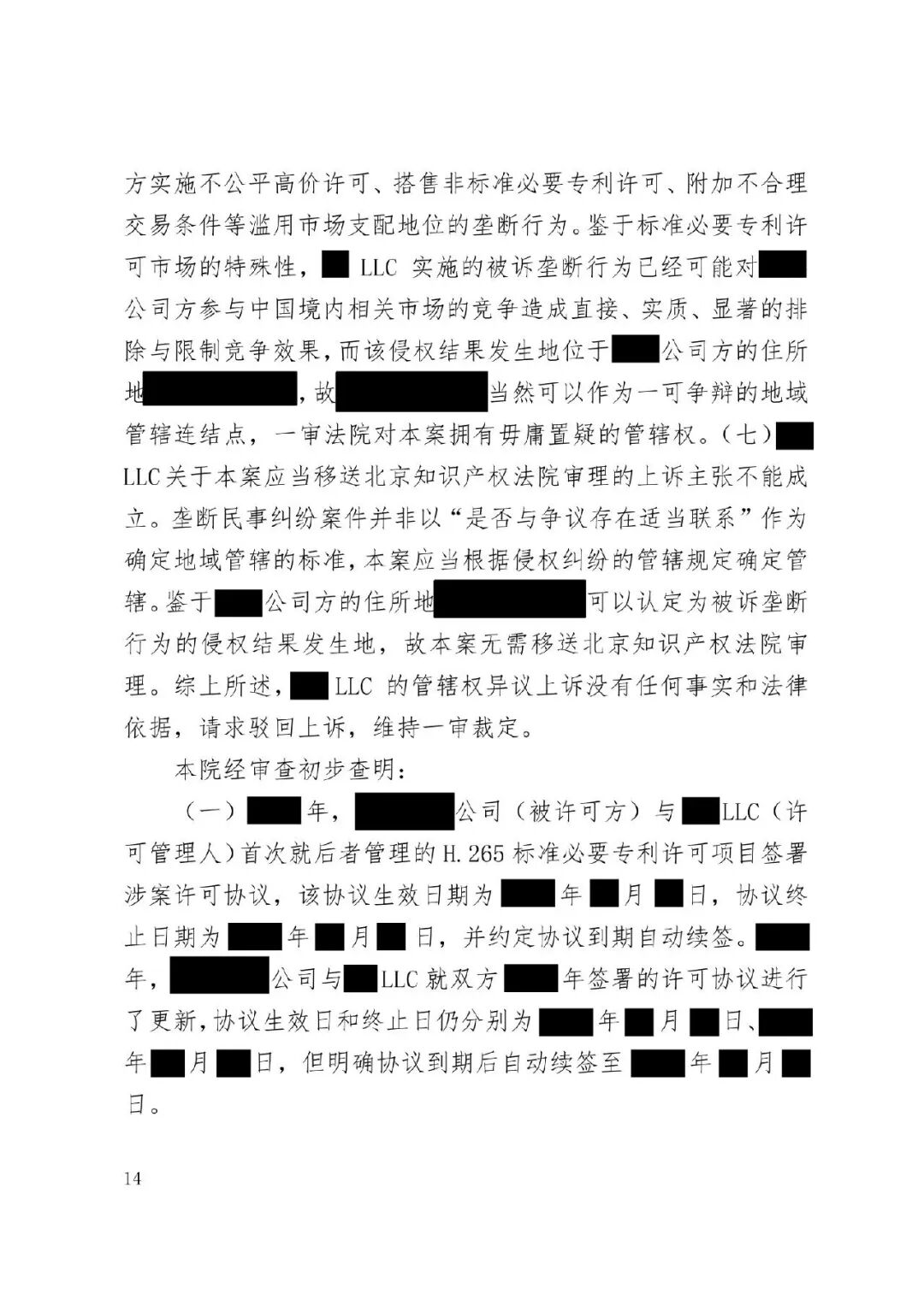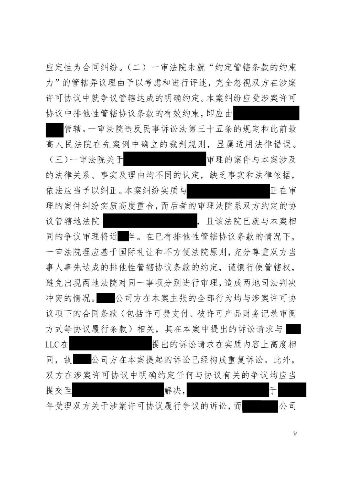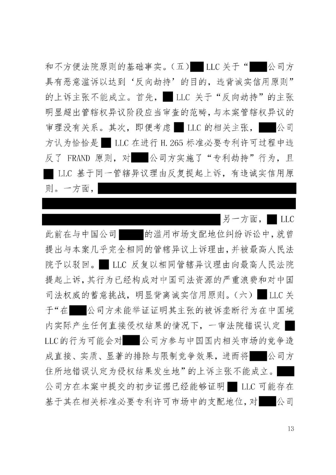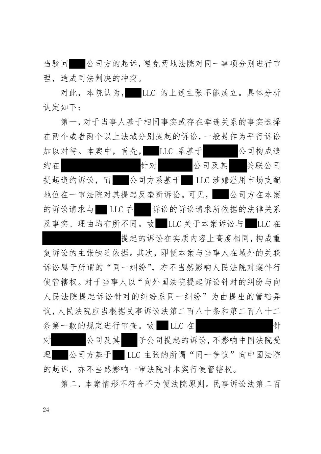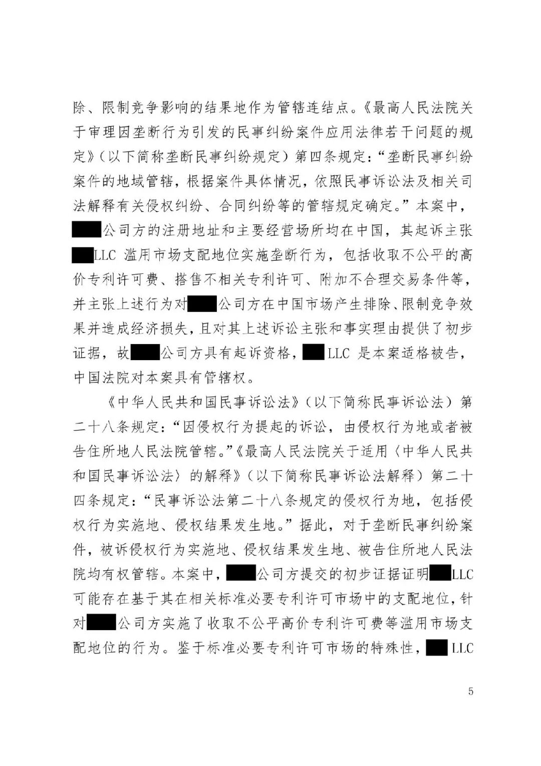涉外案例 | 最高院明确涉外SEP垄断纠纷管辖规则:被诉垄断行为产生排除、限制竞争影响的结果地可作为管辖连结点发表时间:2026-01-12 13:35 案情回顾 被上诉方系中国国内知名企业,主要从事相关技术产品业务。美国LLC是一家依据美国法律成立的专利许可管理公司,负责管理H.265视频编解码标准必要专利池的许可事务。 被上诉方主张,美国LLC在H.265标准必要专利许可市场中具有支配地位,但在许可过程中,美国LLC实施了不公平高价、搭售非标准必要专利、附加不合理交易条件等滥用市场支配地位的行为,严重排除、限制了被上诉方在中国相关市场的竞争,并造成其经济损失。据此,被上诉方向一审法院提起垄断民事侵权诉讼,要求美国LLC停止侵权、赔偿损失。 美国LLC在提交答辩状期间对管辖权提出异议,核心理由是:本案实质是因履行双方《专利组合许可协议》产生的合同纠纷,而非垄断纠纷;该许可协议中已约定了争议解决管辖法院(某外国法院),且美国LLC已在该外国法院针对中国公司方提起了合同违约诉讼,两家中国公司未对管辖提出异议,应视为接受该外国法院管辖。因此,中国法院不应受理本案,或应驳回起诉,或将本案移送至北京知识产权法院审理。 一审法院经审理,裁定驳回美国LLC的管辖权异议。美国LLC不服,上诉至最高人民法院。 争议焦点 本案二审的核心争议焦点围绕管辖权展开,具体涉及: 1、中国法院对本案是否具有司法管辖权; 2、一审法院对本案行使管辖权是否适当; 3、本案是否构成重复诉讼或符合不方便法院原则而应驳回起诉? 裁判观点 一、中国法院对本案是否具有司法管辖权 **,涉案协议管辖条款不能排除中国法院管辖。其一,被上诉方之一并非该协议签约方,不受其约束。其二,该条款限制被上诉方另一公司起诉某国法院,却允许被告选择多国法院,属于“非对称管辖协议”,而非排他性管辖协议。其三,本案涉及滥用市场支配地位,关乎中国市场竞争秩序与社会公共利益,根据《民事诉讼法》第二百八十条,此类纠纷不能通过协议排除中国法院管辖。 第二,根据《反垄断法》第二条及垄断民事纠纷司法解释第六条,被诉垄断行为产生排除、限制竞争影响的结果地可作为管辖连结点。即使被诉行为发生在域外,但其排除、限制竞争的结果发生在我国境内。原告住所地可认定为侵权结果发生地,故中国法院依法享有管辖权。 第三,无论本案定性为侵权或合同纠纷,中国法院均有管辖权。侵权方面,原告住所地即侵权结果发生地位于中国。合同方面,涉案专利清单包含大量涉及中国授予的标准必要专利,部分诉讼标的物所在地位于中国境内;且作为被许可方的原告住所地及合同履行地均在中国。依据《民事诉讼法》第二百七十六条,上述连结点均支持中国法院行使管辖权。 故,中国法院对本案具有司法管辖权。 二、一审法院对本案行使管辖权是否适当 争议发生于标准必要专利许可合同履行过程中,并不意味其仅为合同纠纷而必然排除垄断纠纷的可能。基于一审原告方起诉所主张的事实和理由,本案案由为滥用市场支配地位纠纷,属于侵权纠纷,应依侵权行为地或被告住所地确定管辖。一审原告的住所地系被诉垄断行为产生排除、限制竞争影响的结果地,可作为侵权结果发生地,故一审法院依法对辖区内垄断纠纷具有一审管辖权。 此外,被告提出的其他管辖权异议理由不能成立。管辖权异议阶段仅需审查管辖连结点是否成立,无需审理如“反向劫持”等实体问题。在一审法院已合法受理本案的情况下,被告要求将案件移送北京知识产权法院的主张缺乏依据,最高院不予支持。 故,一审法院对本案行使管辖权是适当的。 三、本案是否构成重复诉讼或符合不方便法院原则而应驳回起诉? 1、本案不构成重复诉讼。美国LLC在外国提起的是合同违约之诉,而中国公司方在中国提起的是反垄断侵权之诉。两案在法律关系、事实基础及诉讼请求上均存在本质不同,属于基于牵连事实在不同法域提起的平行诉讼,而非同一纠纷。即便属于“同一纠纷”,根据《民事诉讼法》第二百八十条,当事人向外国法院起诉并不构成排除管辖的当然理由,亦不影响中国法院依法行使管辖权。 2、本案不符合“不方便法院原则”。该原则的适用须同时满足《民事诉讼法》第二百八十二条规定的五项条件,且由主张方承担举证责任。本案被诉垄断行为的损害结果发生在中国,涉及中国市场竞争秩序与社会公共利益,且美国LLC未举证证明中国法院审理明显不便或外国法院审理更为便利。因此,其主张不能成立。 裁判结果 最高人民法院最终裁定:驳回美国LLC公司的上诉,维持一审法院驳回其管辖权异议的原裁定。本裁定为终审裁定。 判决原文如下: ![]() ![]() ![]() ![]() ![]() ![]() ![]() ![]() ![]() ![]() ![]() ![]() ![]() ![]() ![]() ![]() ![]() ![]() ![]() ![]() ![]() ![]() ![]() ![]() ![]() ![]() ![]() |