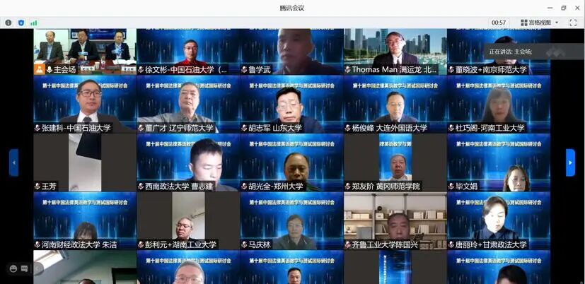 此次中国法律英语教学与测试国际研讨会采取线上+线下共同结合的形式,线上与会嘉宾也就此次研讨会发表看法。 北京大学国际法学院满运龙教授在其主旨发言“法律文件的模糊性及其翻译处理”中,通过对立法、商业合同和国际条约等法律文件实例的解析,阐述了法律语言模糊表述的原因,探讨了如何在法律翻译中处理原始文本的模糊表述,提出了鉴别原则并探讨在不同情况下的处理技能。 中南财经政法大学胡惮教授在其“人工智能法学中的法律语言工程与技术”主旨发言中介绍了运用人工智能技术处理法律问题的本质内涵,详实地介绍了法律语言智能化处理所涉及的主要领域:“法律知识工程语言资源建设和法律信息检索”和“法律推理和法律决策的计算模型开发”。他强调语言是知识和经验的主要载体,因此,法治智能化的实现必须以法律语言的智能化处理为基础。 上海政法学院倪传斌教授在其主旨发言“基于ESP的司法英语教学理念构建”中界定了教学理念、ESP和司法英语等术语的内涵,从教师、学生、课程设置、教材和测试等五个方面,分析了司法英语的教学现状。倪教授基于现状分析,提出了在“大学英语教学”和“司法专业英语教学”阶段之间,构建一个“司法基础英语教学”阶段的设想并阐述构建该设想的理据。 南京师范大学董晓波教授在其题为“从‘他塑’到‘自塑’:法律翻译与国家文化软实力建设”的主旨发言中,回溯了19世纪西方对中国法律所持有的偏见,在总结了中国法律形象“他塑”和传播的结构和形态的基础上,从话语权力理论视角分析了中国法律形象“他塑”背后的真实意图,从而明确地提出新时代中国法律翻译在“自塑”法治国家形象、文化软实力建设方面的方式、路径、内容及科学规划。 西南政法大学熊德米教授就“《尚书》法律语言英译得失比录”进行了主旨发言,指出《尚书》法律语言的各种英译本中的曲解误译缺乏系统研究,更缺乏正误纠偏性优秀成果。熊教授呼吁翻译批评者对以上问题进行批评研究,着力改变其“只管译,没人批评的状况。” 甘肃政法大学俞金香教授在主旨发言“涉外合同管理策略之防范恶意缔约——一个基本引入”中指出,在涉外合同领域,企业防范恶意缔约的重要性和必要性,并提出了防范恶意缔约的常规途径。
