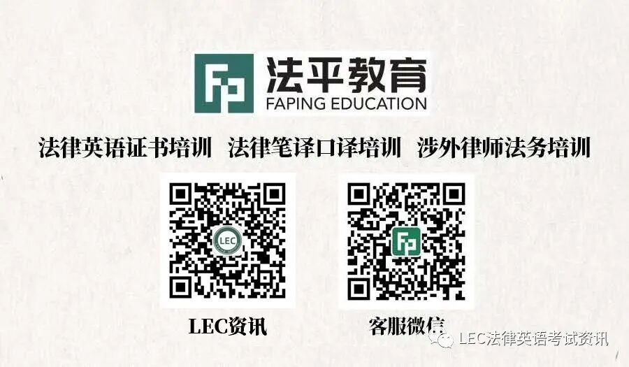 全新LEC备考网课 LEC考试解读—主讲**:中国政法大学 张法连教授。 法律英语写作—主讲**:中国政法大学 张法连教授。 美国宪法—主讲教师:中国政法大学 王芳副教授。 美国侵权法—主讲教师:中国政法大学 马静教授。 英美法律文化—主讲教师:中国政法大学 魏蘅副教授。 英美法律术语—主讲教师:中国政法大学 王芳副教授。 美国刑法—主讲教师:甘肃政法大学 赵永平副教授。 美国刑诉法—主讲教师:甘肃政法大学 赵永平副教授。 美国财产法—主讲教师:北京外国语大学 郑小军教授。 美国证据法—主讲教师:河北师范大学 段文静副教授。 美国合同法—主讲教师:胡晓凡,美国范德堡大学法律博士(J.D.)。 美国知识产权法—主讲教师:汤文华,美国缅因大学法律硕士(LL.M.)。 WTO法—主讲教师:唐冠虹,伦敦玛丽女王大学高级讲师。 案例阅读—主讲教师:北京外国语大学 郑小军教授。 法律英语翻译—主讲教师:中国政法大学 王芳副教授。 微信咨询:孙老师(17720104536)。 点击“阅读原文”,查看课程。 关注LEC公众号,最新动态尽知!